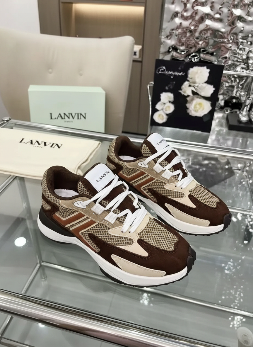 Lanvin Brown Mesh Suede Sneakers Men’s Running Shoes