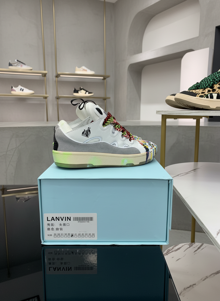 Lanvin unisex sneakers in pink and white, featuring colorful woven laces, premium materials, and unique sole design for stylish comfort and urban fashion.