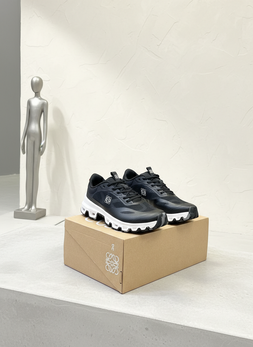Loewe Cloudventure Sneakers—Stylish black running shoes with breathable mesh and cushioned sole, perfect for comfort, fashion, and performance in urban or outdoor adventures.