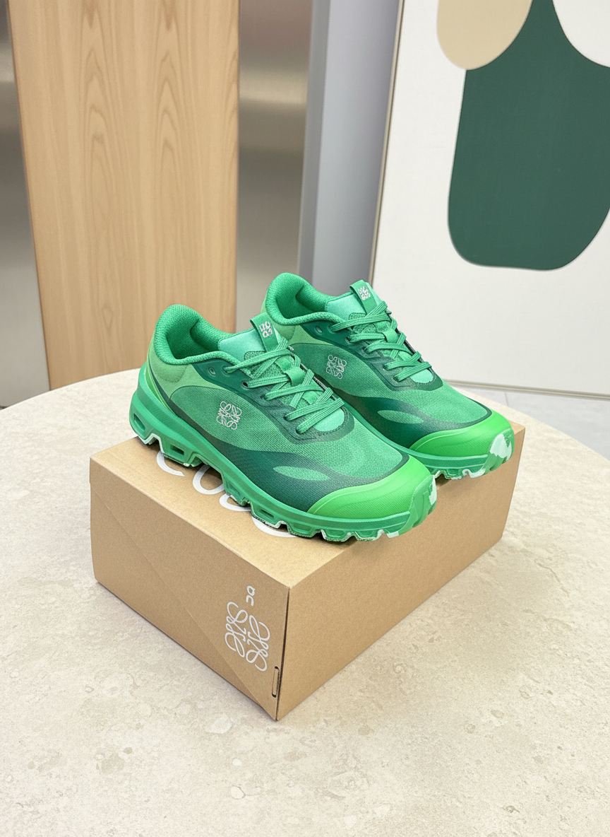 Loewe Green Mesh Running Sneakers, lightweight breathable athletic shoes with cushioned sole, stylish design for sports, walking, and daily wear.