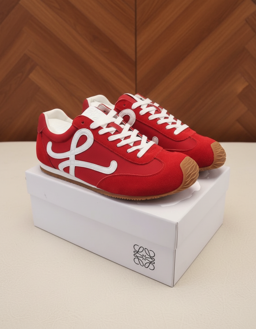 LOEWE Red Sneakers UTJB1024ZVL, stylish lace-up design with signature logo, available sizes 35-44, perfect for casual wear and fashion lovers.