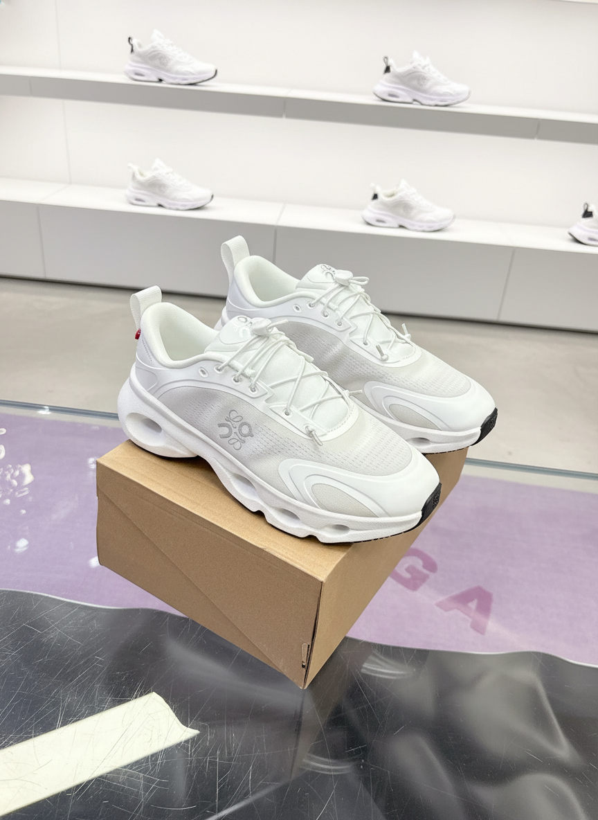 Loewe white sneakers, lightweight breathable mesh, cushioned sole for comfort, stylish design perfect for casual wear and sports, premium quality craftsmanship.