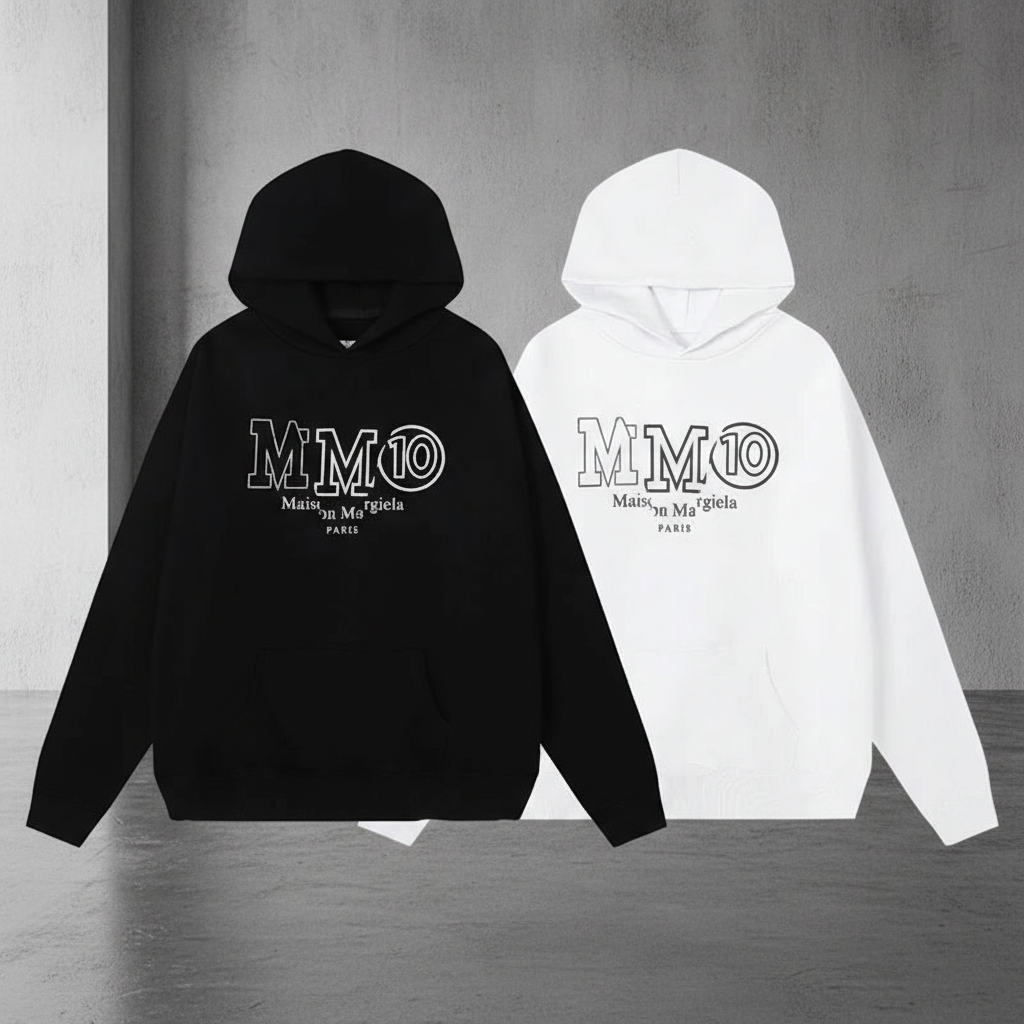 Maison Margiela MM10 Hoodies, premium cotton, black or white, stylish unisex design, perfect for casual wear, street fashion, and luxury comfort.