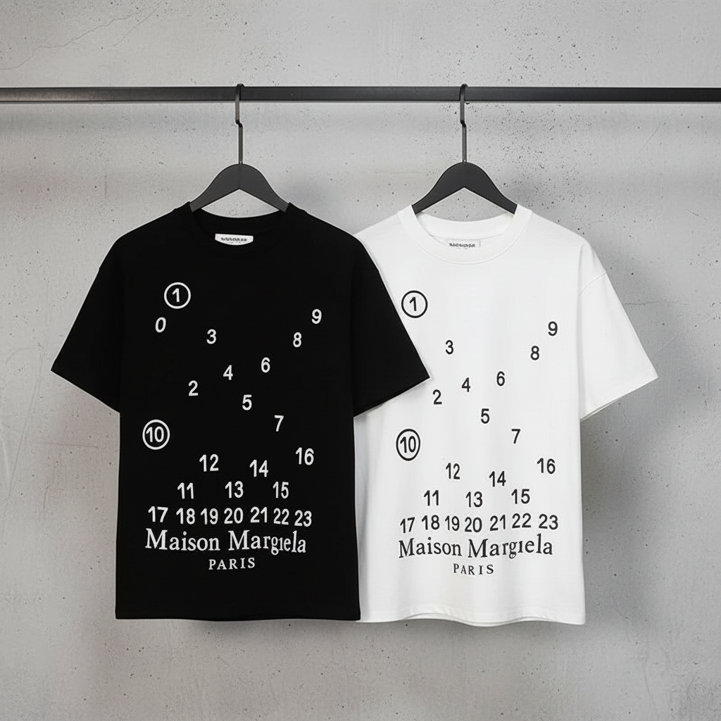 Maison Margiela Paris Number Print Cotton T-Shirt, minimalist black or white design, casual unisex style, premium quality for streetwear and fashion lovers.