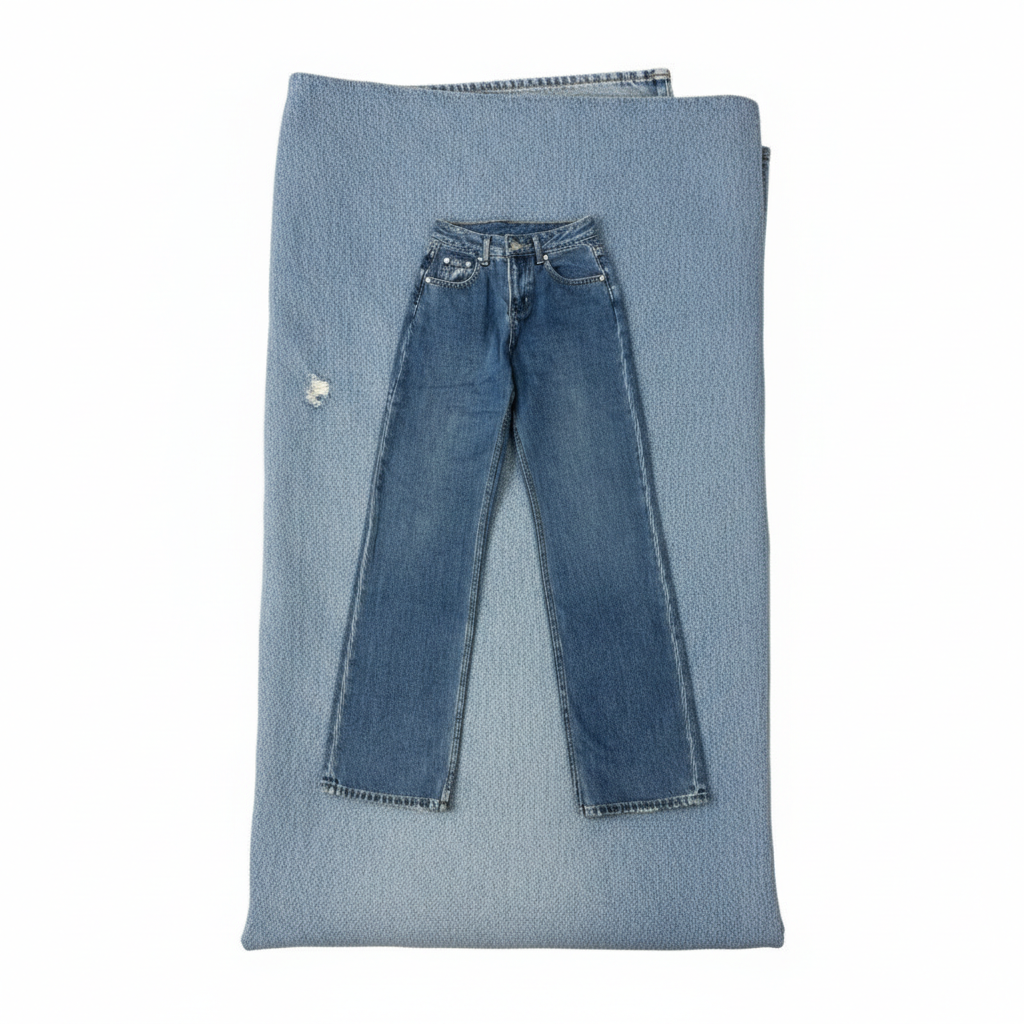 Maison Margiela wide-leg blue denim jeans, classic high-waist design, premium cotton fabric for comfort and style, perfect for casual and streetwear outfits.