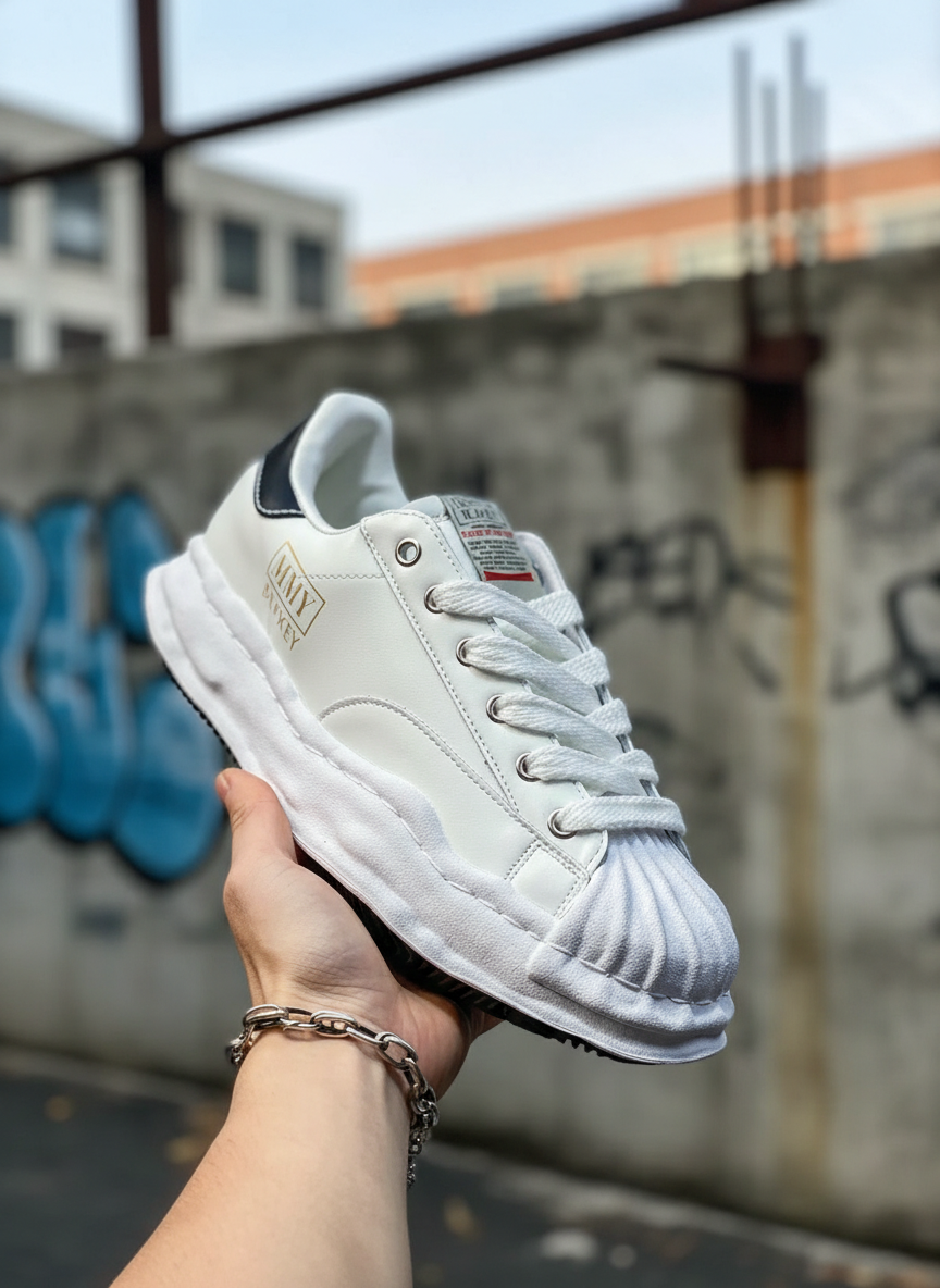 Maison Mihara Yasuhiro sneakers, featuring a unique sculpted sole and shell toe design, crafted for modern street style with premium comfort and distinctive Japanese fashion flair.