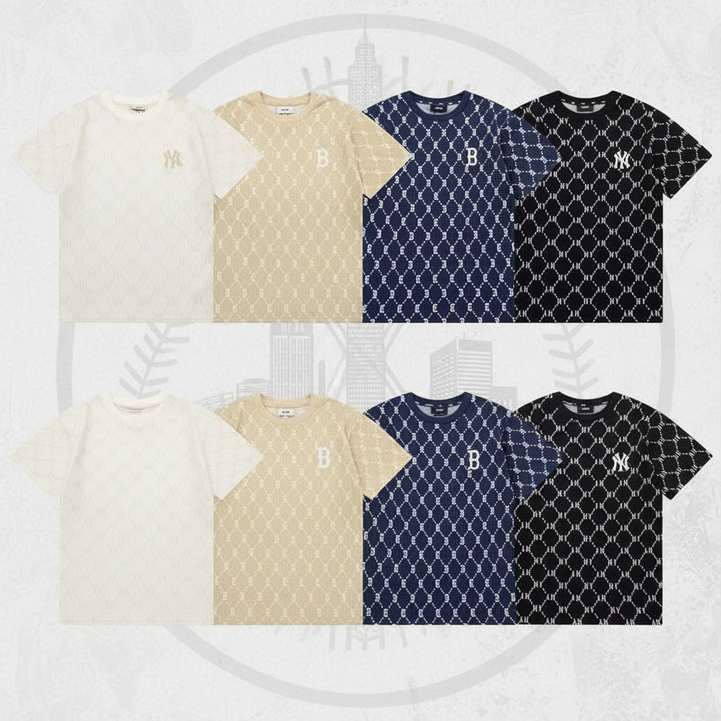 MLB T-Shirts, stylish casual tops with all-over logo print, breathable cotton, perfect for sports, streetwear, and everyday fashion in multiple colors.