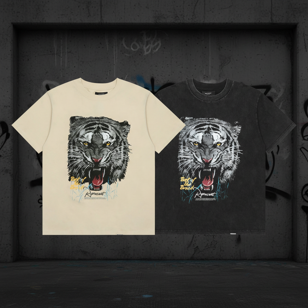 Represent Tiger Graphic T-Shirt, trendy streetwear with bold roaring tiger print, soft cotton fabric, perfect for casual wear and making a fierce fashion statement.