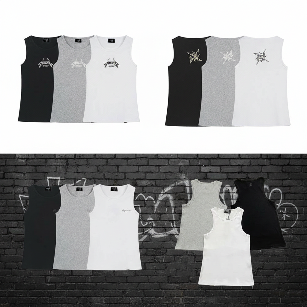 T-ShirtsRepresent Men’s 3-Pack Sleeveless Tank Tops, Casual Cotton Muscle Tee, Summer Gym Undershirts in Black, Grey, and White for Sports and Daily Wear