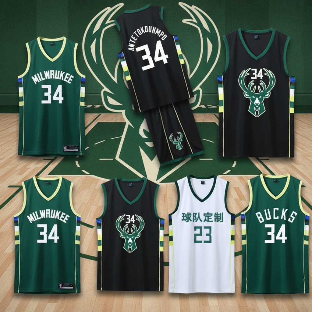Milwaukee Bucks Basketball Jersey Set, Custom Team Uniform, Breathable Sportswear with Free Number Printing, Includes Arm Sleeve and Wristband, Perfect for Training and Matches.
