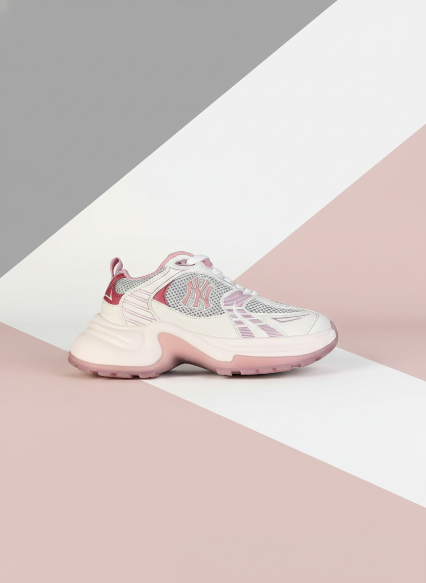 MLB Women’s Pink White Chunky Sneakers HL031600703, Breathable Mesh, Comfortable Casual Sports Shoes, Size 35-39.5