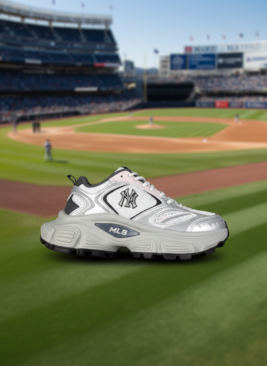 MLB Chunky White Silver Sneakers for Men Women