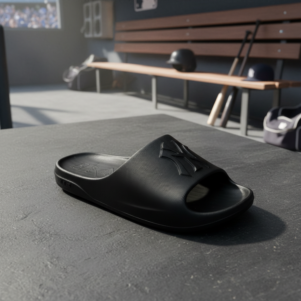 MLB Men’s Black Slide Sandals, Comfortable Non-Slip Casual Slippers with Logo, Perfect for Summer Beach, Home, and Outdoor Wear.