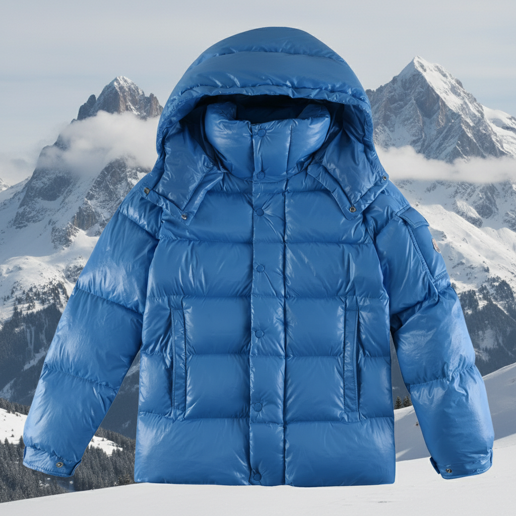 Moncler Men’s Blue Hooded Down Jacket, Lightweight Winter Coat with Quilted Design, Warm Insulated Outerwear for Cold Weather