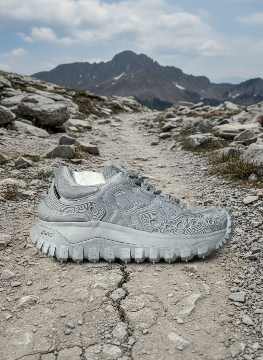 Moncler Men’s Grey Patterned Sneakers with Vibram Sole, Lightweight Comfort, Durable Outdoor Street Style, Fashionable Premium Casual Shoes for Everyday Wear