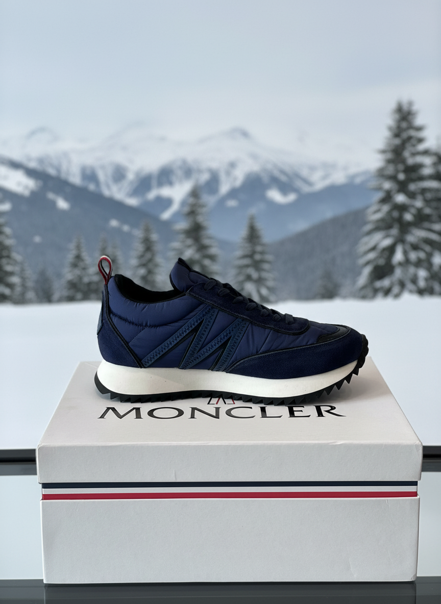 Moncler Men’s Navy Blue Sneakers, stylish lightweight design with premium materials, perfect for casual wear and outdoor activities.