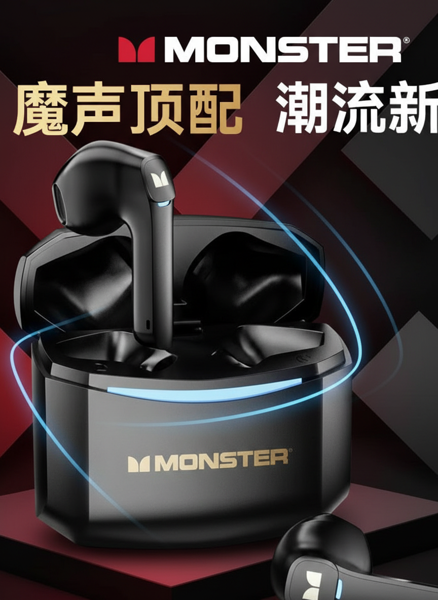 MONSTER premium sound wireless earbuds, stylish new design, delivering powerful bass and crystal-clear audio for trendsetters.