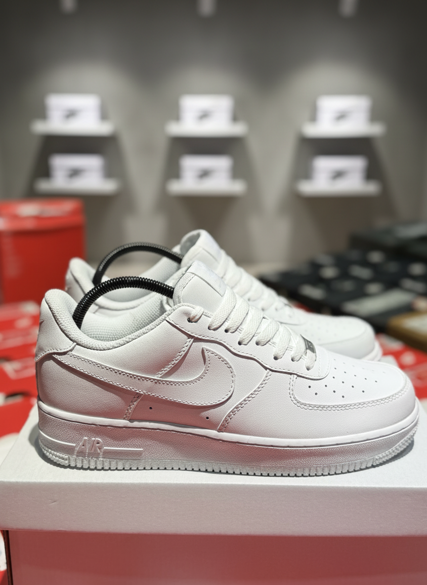 Nike Air Force 1 Low White Leather Sneakers, classic design with durable sole, perfect for casual wear and sports, offering comfort and style for everyday use.