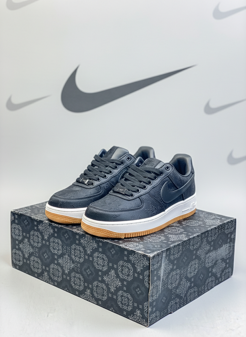 Nike black leather sneakers with gum sole, stylish low-top design, perfect for casual wear and street fashion, available in sizes 36-46.