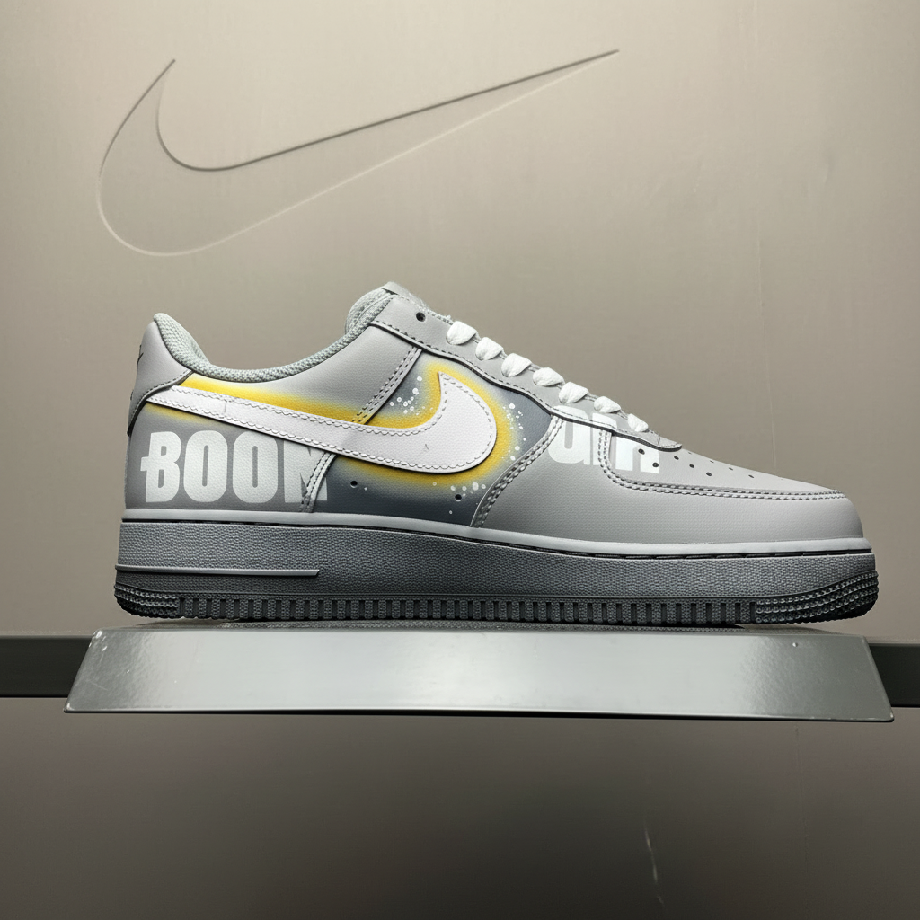 Nike Air Force 1 Low Grey Sneakers with Yellow Swoosh, Stylish Streetwear Shoes for Men, Comfortable Casual Sport Footwear