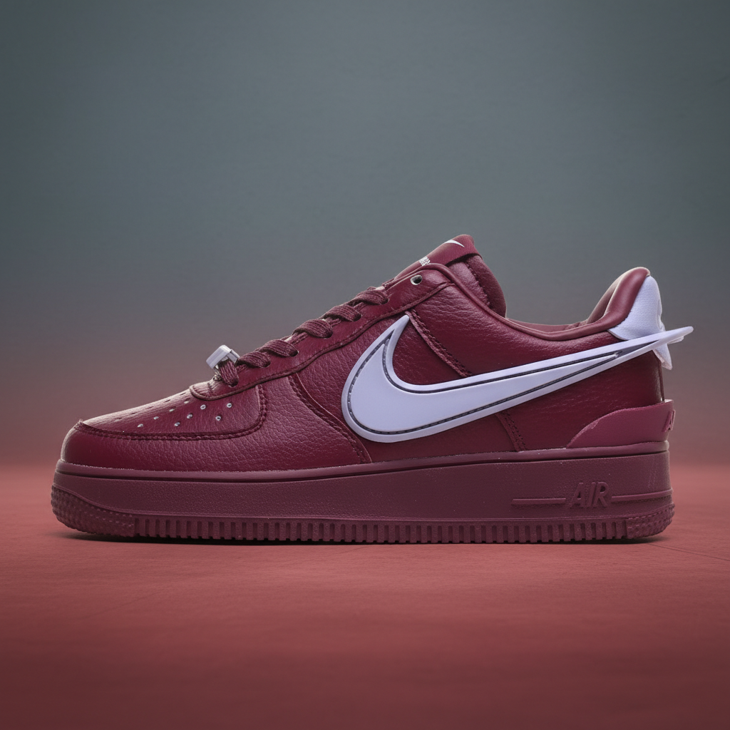 Nike Air Force 1 Low Burgundy Leather Sneakers with Purple Swoosh, stylish casual shoes for comfort and streetwear fashion.