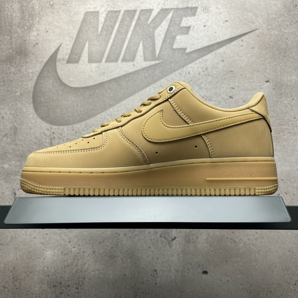 Nike Air Force 1 Low Wheat Sneakers, premium suede upper, classic cushioned sole, durable design, perfect for streetwear and casual style.