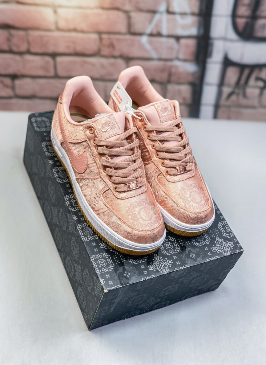 Nike Air Force 1 Low Pink Silk Sneakers, stylish lightweight design, durable sole, perfect for casual wear and sports, sizes 36-46 available.