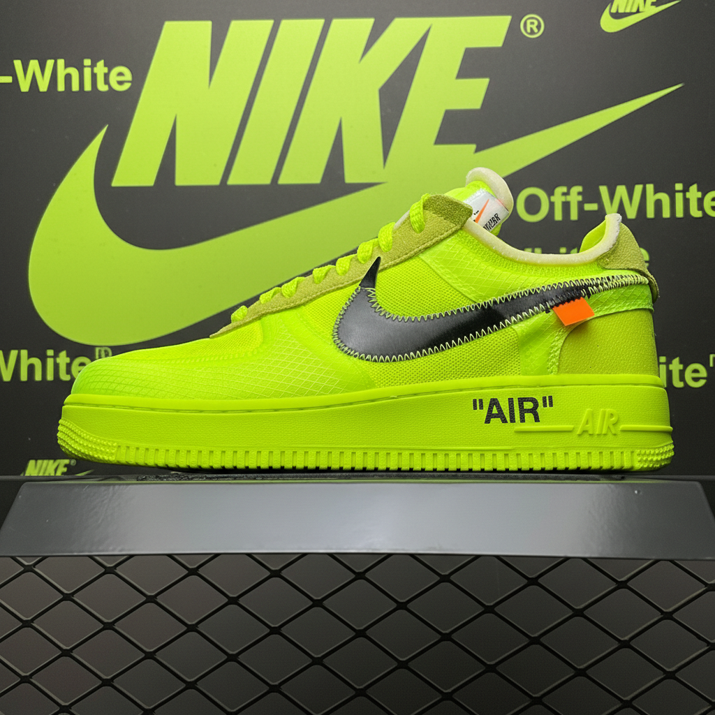 Nike Air Force 1 Low Volt sneakers with black Swoosh, mesh and suede upper, signature “AIR” midsole, and vibrant neon design for streetwear style and comfort.