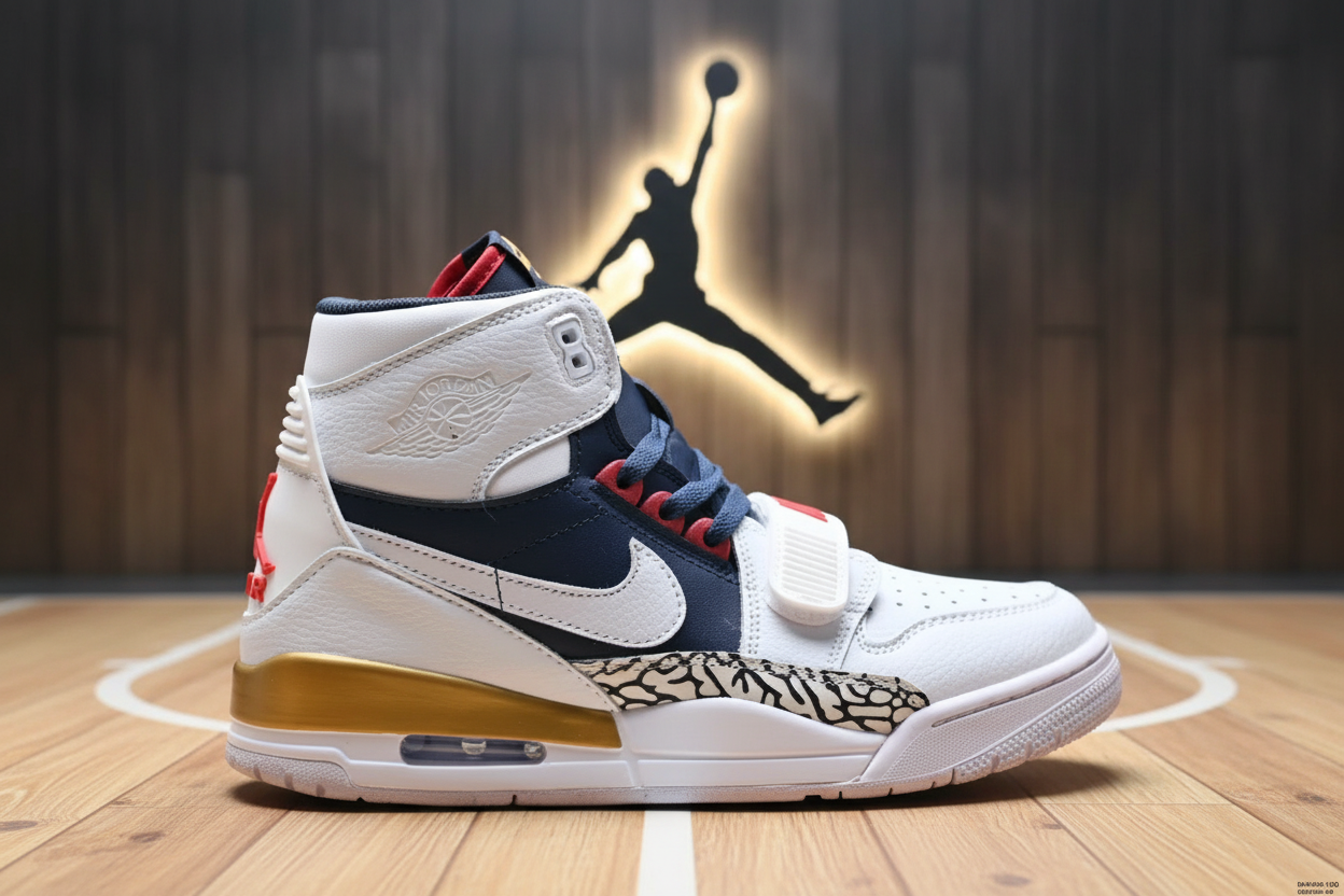 Nike Air Jordan Legacy 312 White Navy Gold Men’s Basketball Shoes with Elephant Print and Mid-Top Design for Comfort and Performance