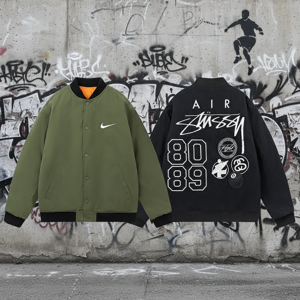 Nike Men’s Streetwear Bomber Jacket, Fashion Embroidered Design, Casual Warm Coat for Outdoor and Daily Wear