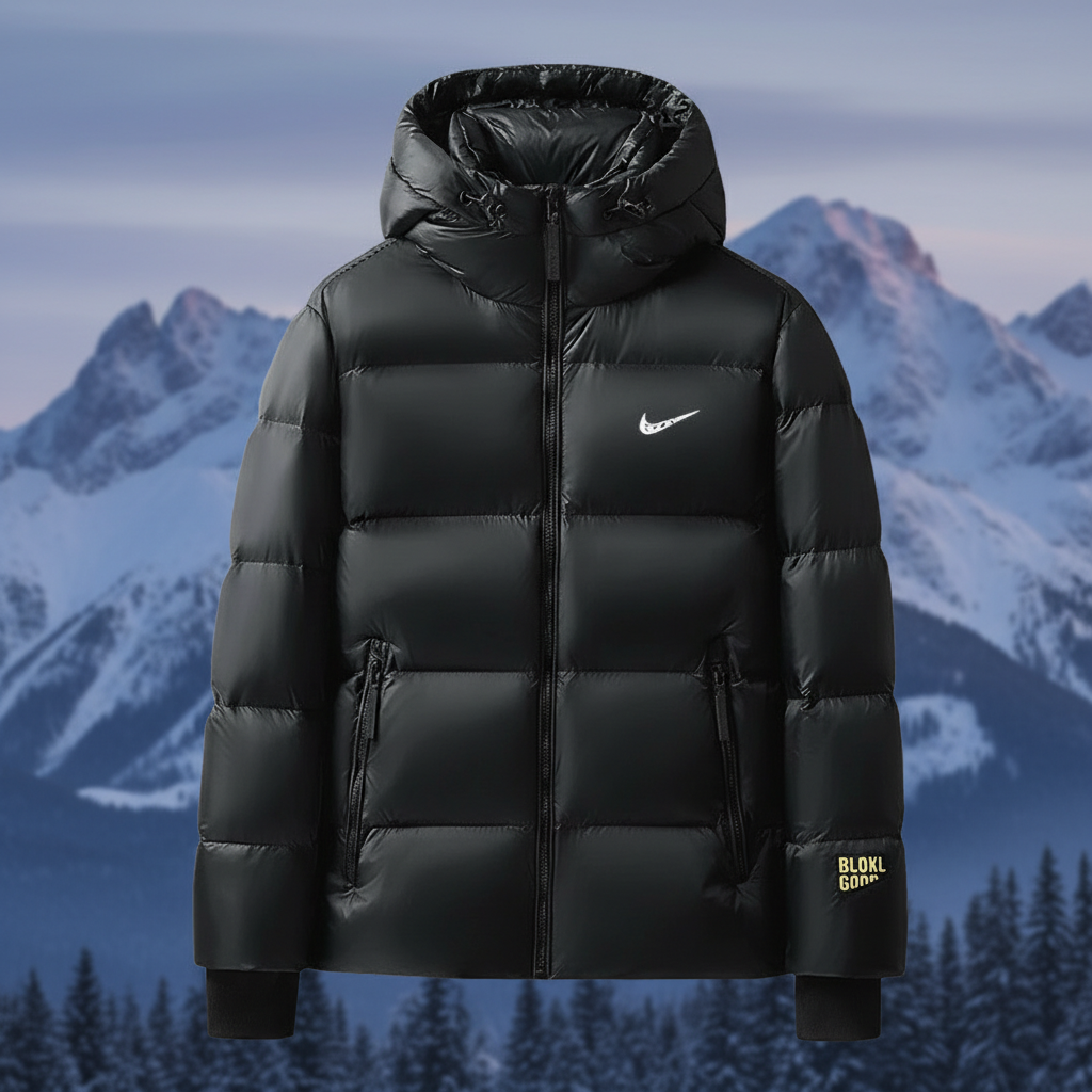 Nike Men’s Black Puffer Jacket Winter Warm Hooded Coat, Lightweight Waterproof Outerwear for Outdoor Sports and Casual Wear.
