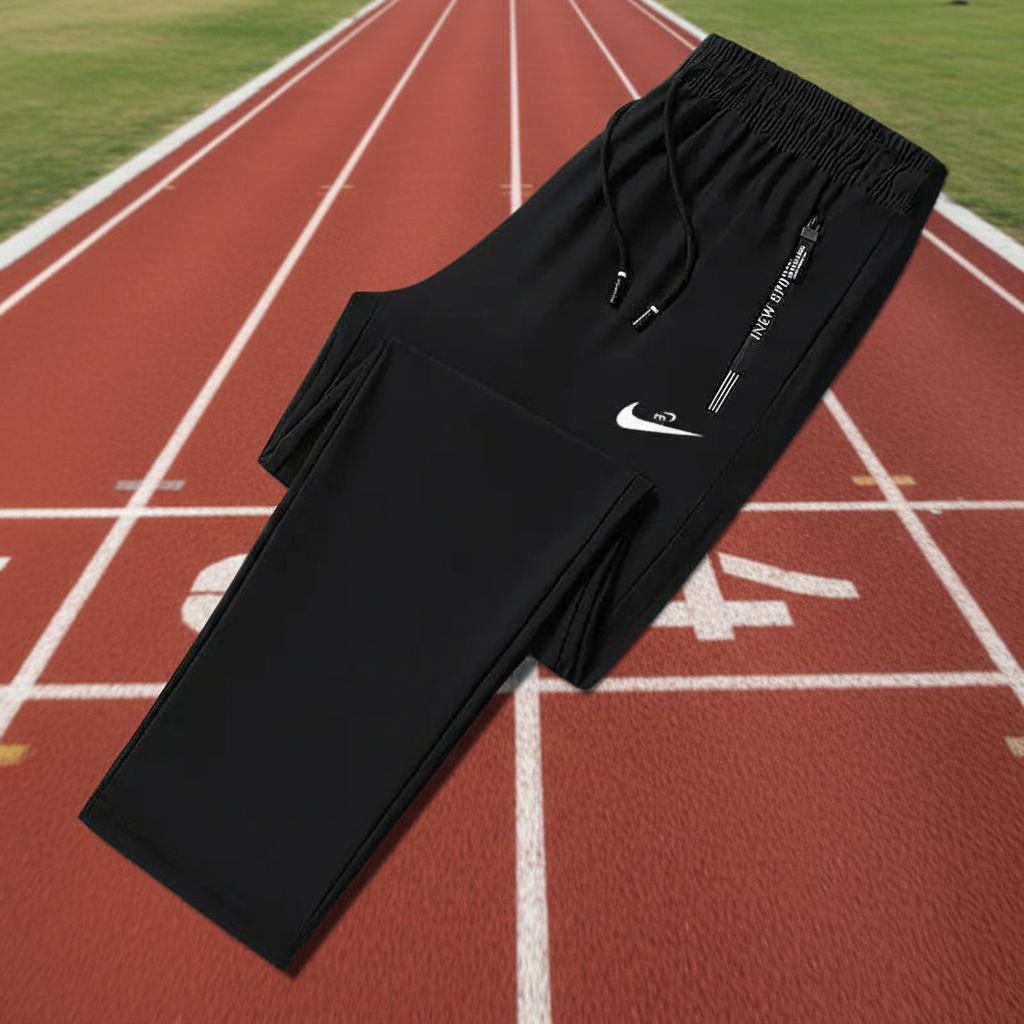 Nike Men’s Black Sports Pants, lightweight breathable fabric, elastic waistband with drawstring, perfect for running, training, gym, and casual wear.