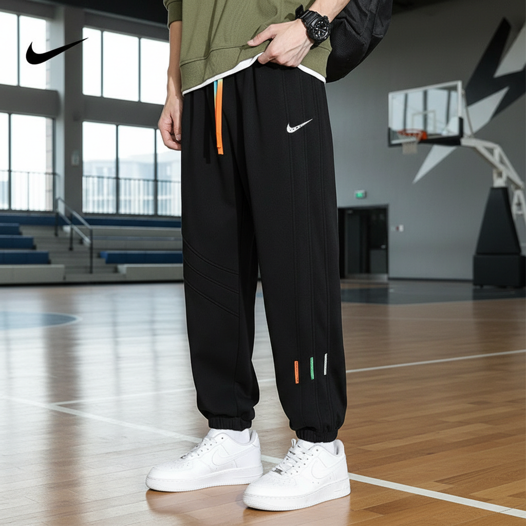Nike Men’s Casual Black Jogger Pants with Drawstring Waist, Elastic Cuffs, and Color Accent Trim for Sport, Workout, and Streetwear Style.