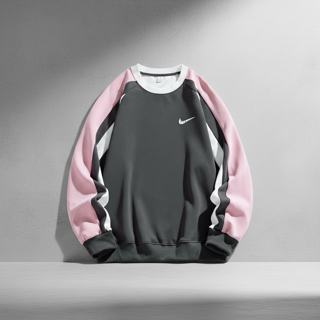 Nike color block hoodie, stylish pink and grey design, soft fabric, perfect for casual wear, sports, and street style fashion.
