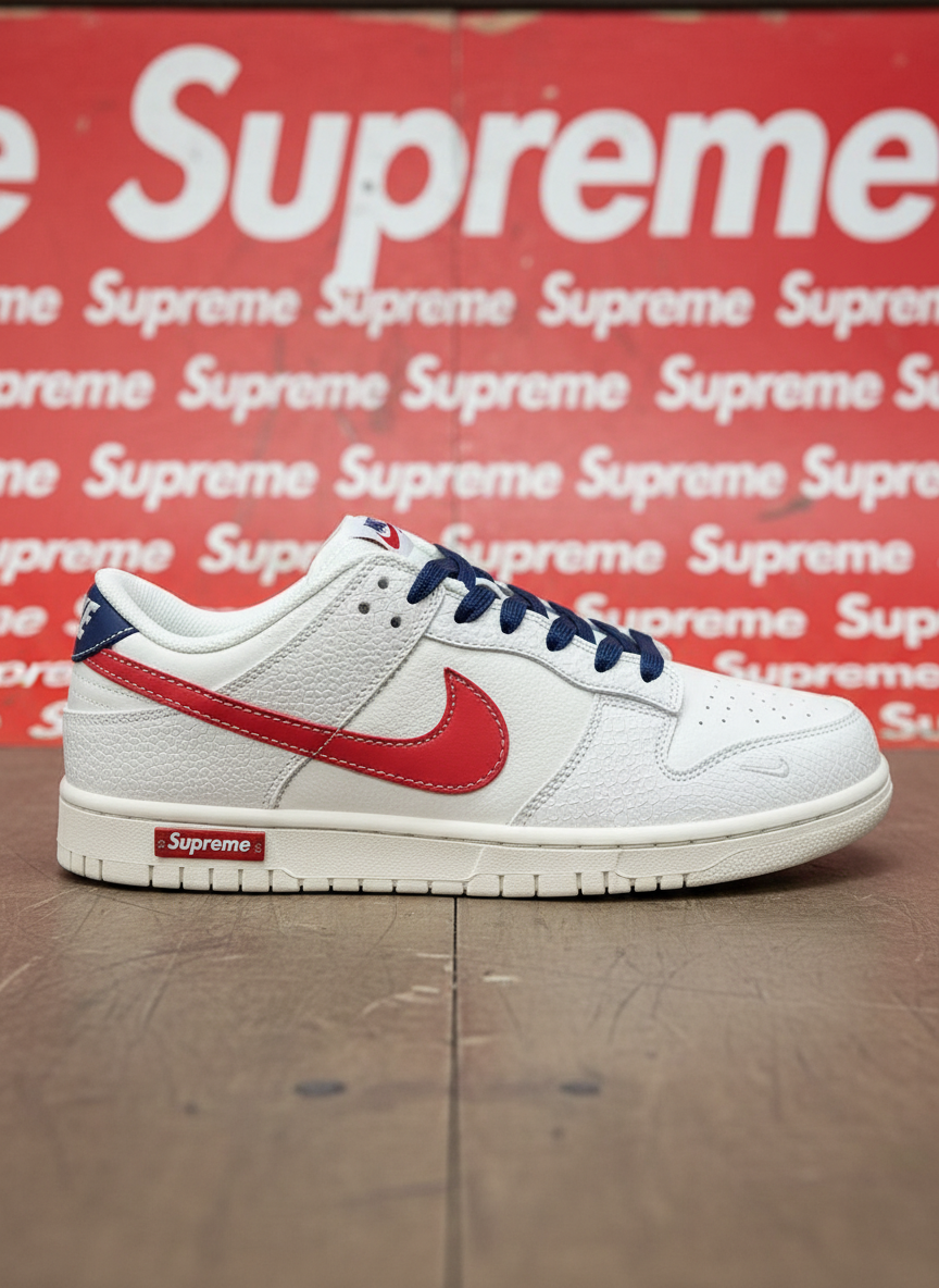 Nike Dunk Low White Red Supreme Sneakers