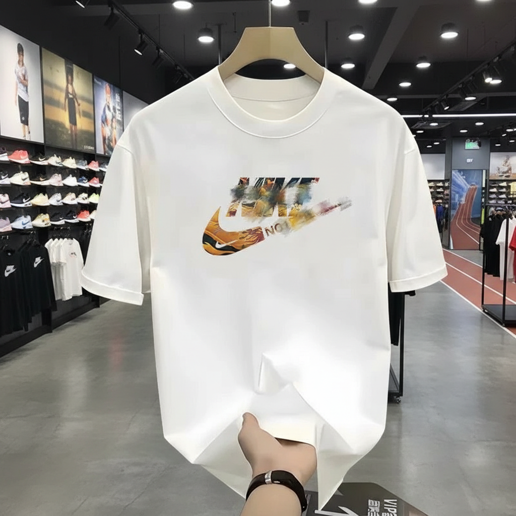 Nike Men’s White Graphic Logo T-Shirt, Casual Short Sleeve Top, Comfortable Cotton Tee for Fashion and Sports Wear
