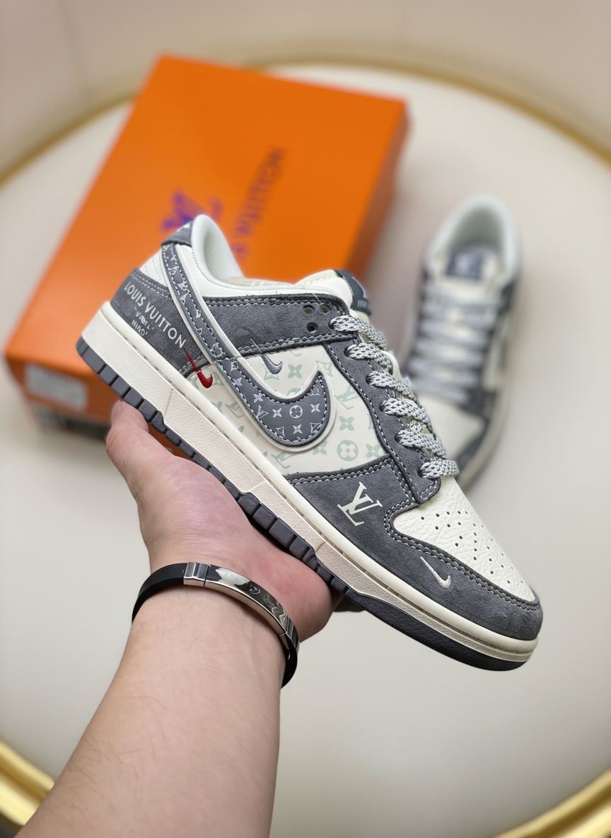 Nike Louis Vuitton low-top sneakers with premium leather, monogram design, and durable rubber sole for stylish comfort and everyday wear.