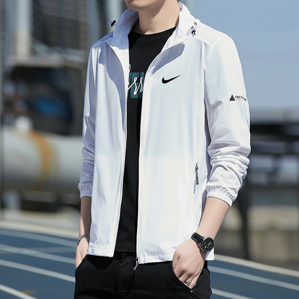 Nike Men’s Lightweight White Sports Jacket, breathable zip-up design, perfect for running, training, and casual wear. Stylish, comfortable, and ideal for all seasons.