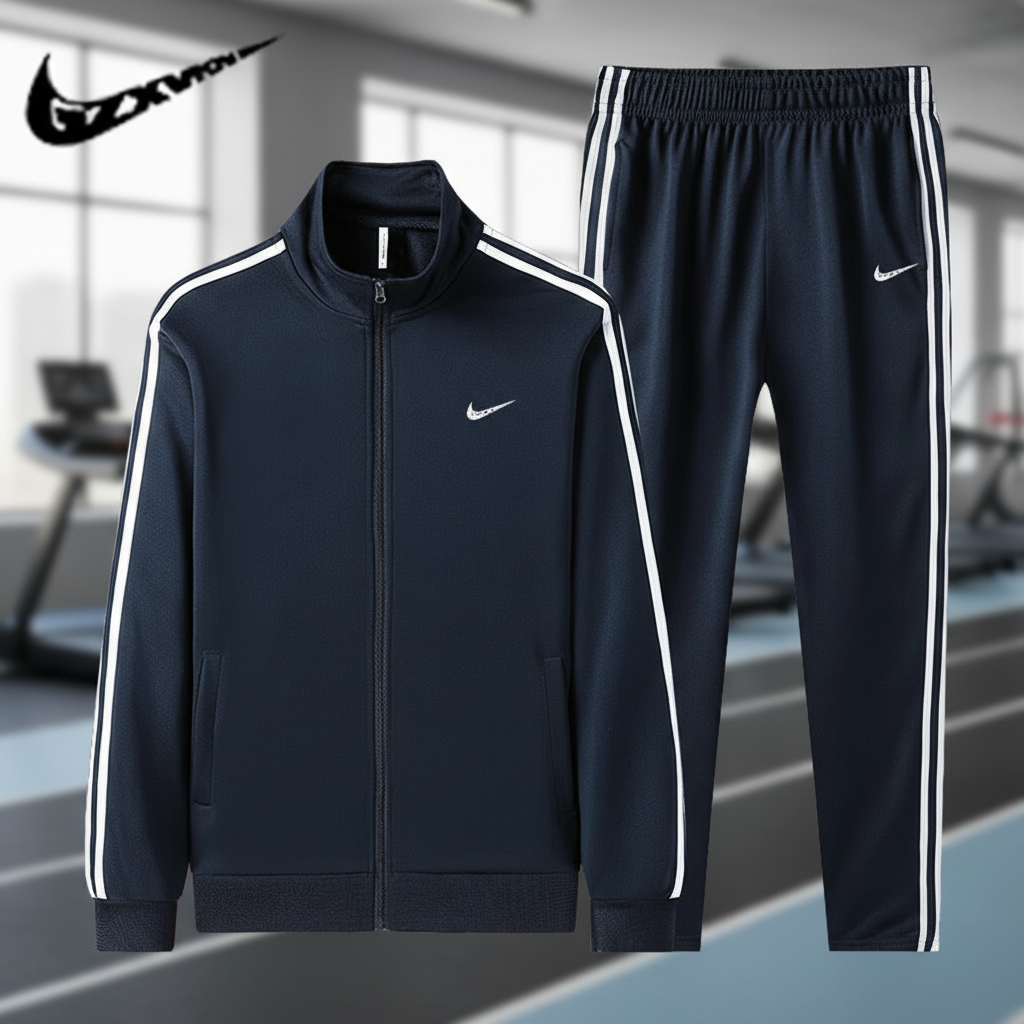 Nike Men’s Tracksuit Two-Piece Set, Lightweight Athletic Jacket and Pants with White Stripes, Perfect for Training, Running, and Casual Wear.