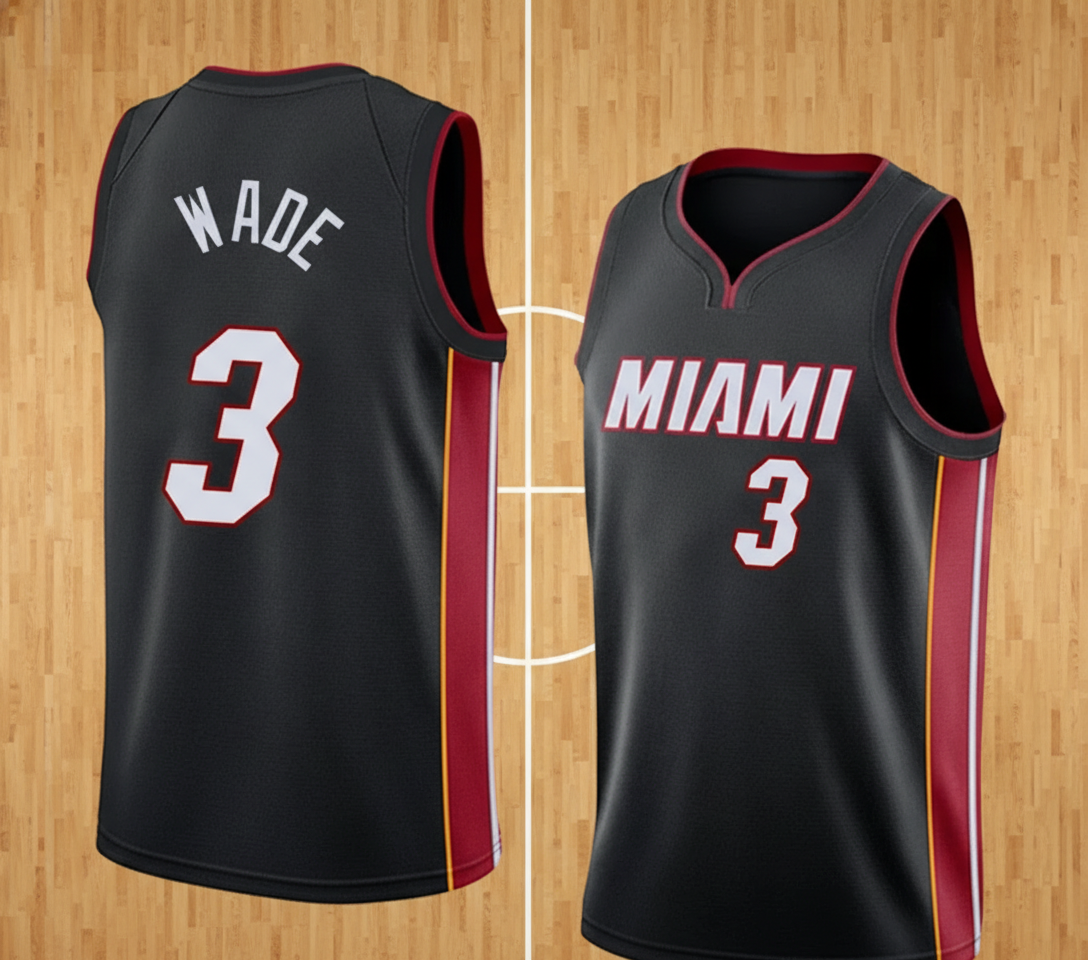 Nike Miami Heat #3 Wade Basketball Jersey, breathable sports tank top for men, ideal for NBA fans and athletic wear.