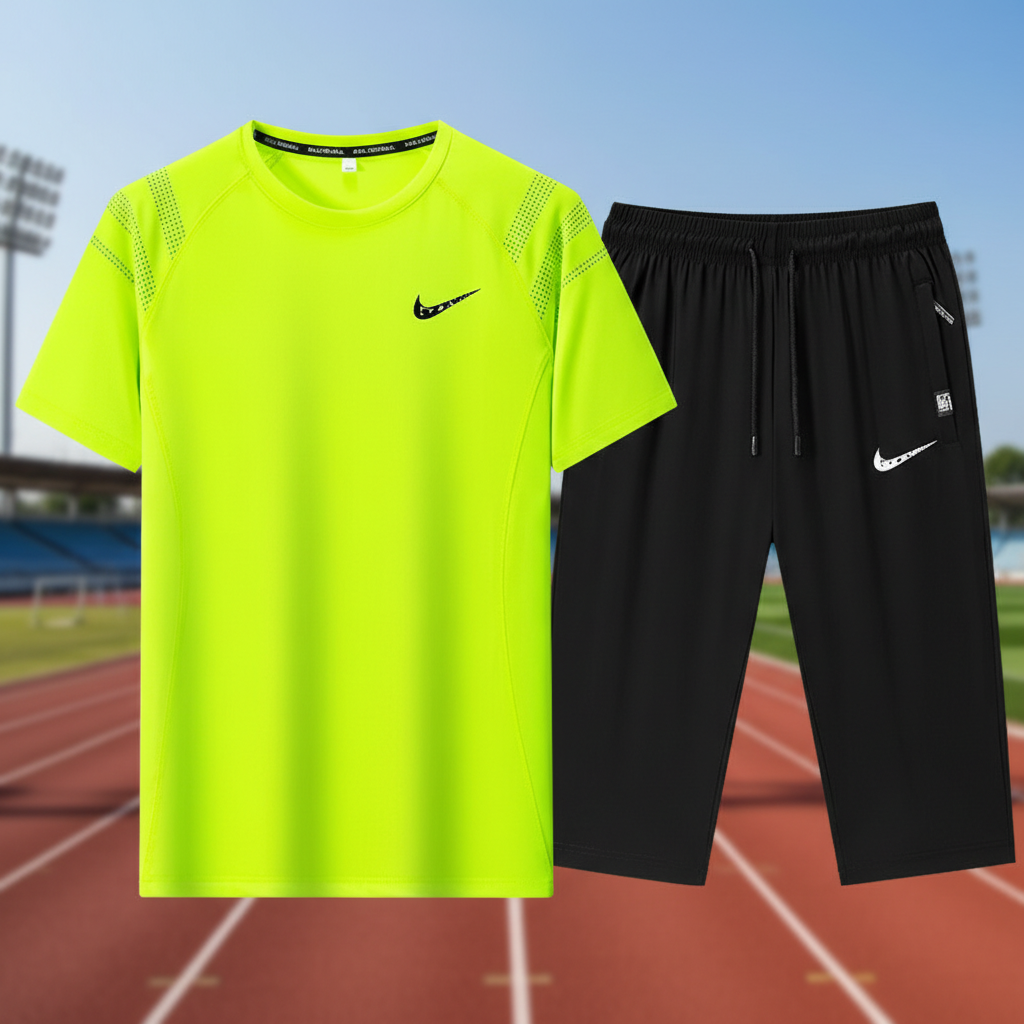 Nike Men’s Sports Set, Lightweight Quick-Dry T-Shirt and Breathable Shorts, Ideal for Running, Training, and Outdoor Fitness Activities.