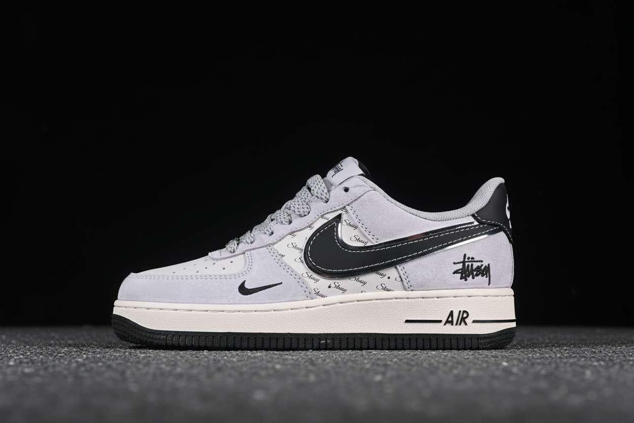 Nike Stussy Air Force 1 Low Pigskin Leather Black Silver Swoosh