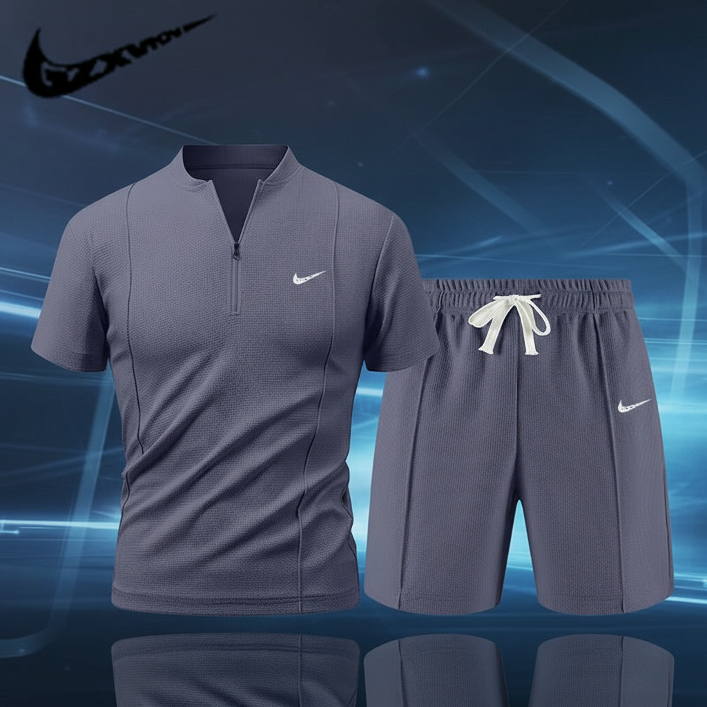 Nike Men’s Sportswear Set, Short Sleeve Zipper T-Shirt and Elastic Waist Shorts, Lightweight Breathable Fabric for Training, Running, and Casual Wear