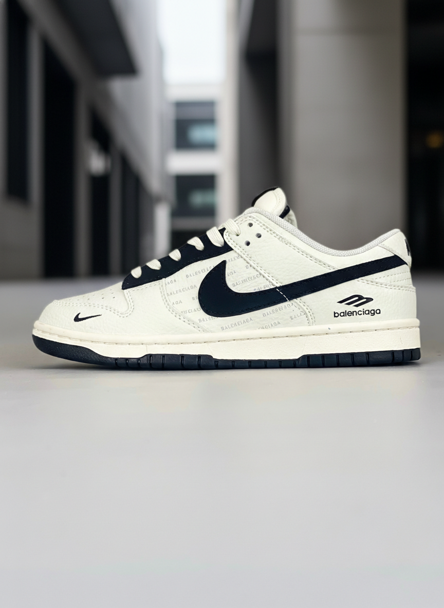 Nike Balenciaga low-top sneakers in white and black, premium leather, stylish design, comfortable fit, perfect for casual wear and sports.