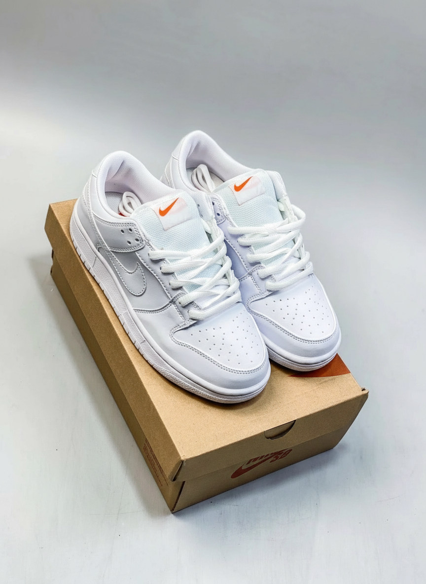 Nike White Low-Top Sneakers with Orange Logo, Breathable Mesh, Durable Rubber Sole, Stylish Casual Shoes for Men and Women, Sizes 36-47