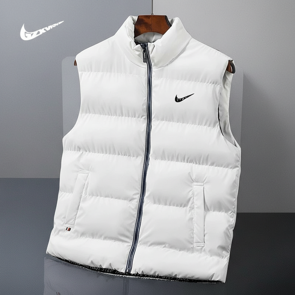 Nike Men’s White Puffer Vest – Sleeveless Winter Jacket, Lightweight Warm Outerwear for Outdoor Sports and Casual Wear