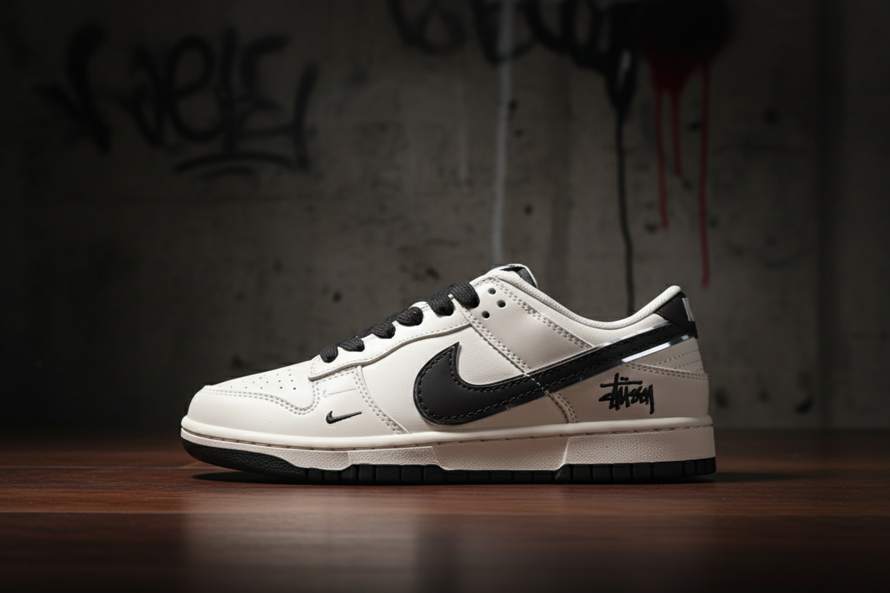 / Nike x Stussy SB Dunk Low Men Women White Black Leather