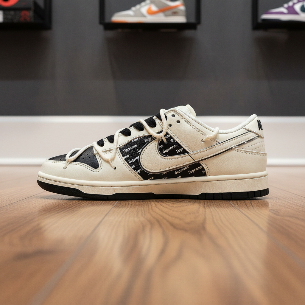 / Nike x Supreme SB Dunk Low Black Leather Sneakers