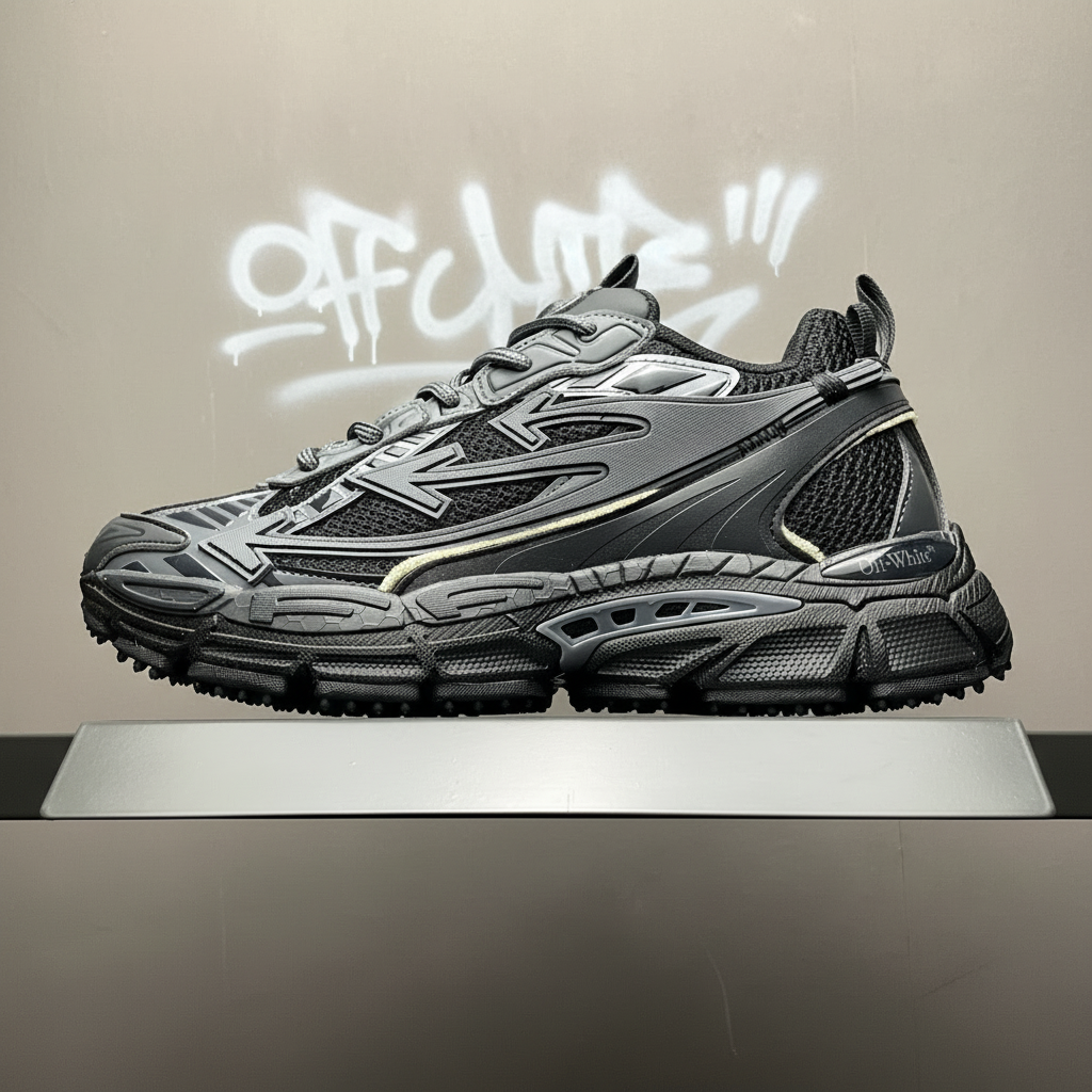 Off-White Black Mesh Chunky Sneakers, stylish sports-inspired design with durable sole, breathable upper, and modern detailing for everyday comfort and streetwear fashion.