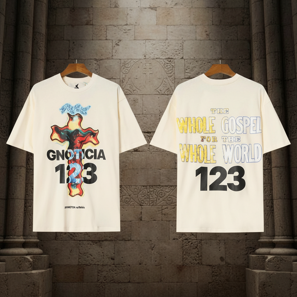 GNOTICIA Essentials 123 Graphic T-Shirt, stylish unisex streetwear made from soft cotton, featuring bold front and back prints for a modern, artistic look perfect for casual fashion.